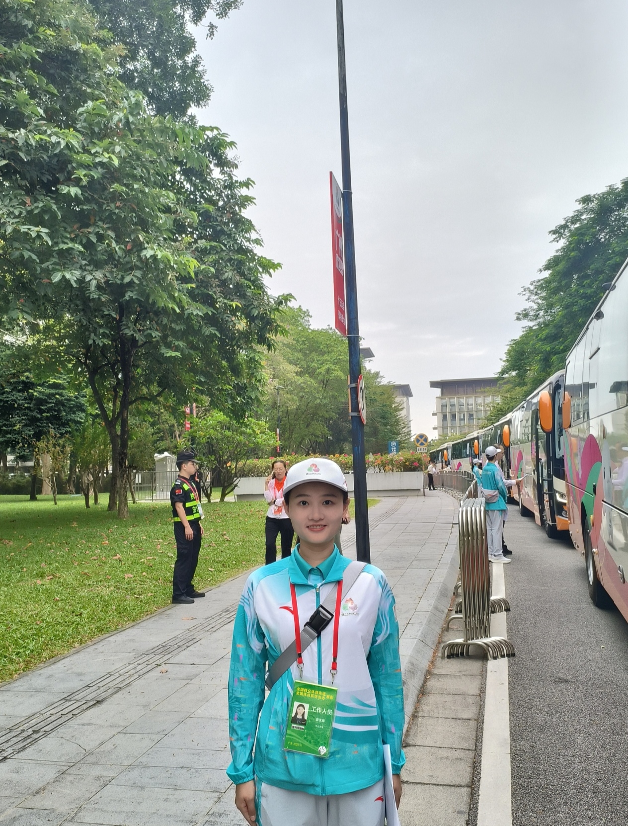 从前期培训统筹、伙伴们的需求对接,到赛事期间的流程衔接、突发情况补位,廖沈娜始终以细致周全的考量,将繁杂事务打理得井井有条。她将学科“精益求精、筑牢根基” 的特质深度融入志愿服务,每一个环节都反复核对、不留疏漏,用默默付出为整个志愿团队筑牢 “坚实后盾”。